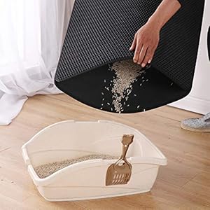 Morfone-Katzenklo-Matte-Groe-Gre-75-55-cm-katzenklo-vorleger-Waben-Design-Katzenstreu-Matte-Wasserdichte-Doppelte-Katzenklo-Schichte-Entwurf-Bienenwabe-Schwarz