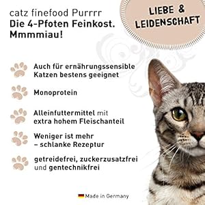 catz-finefood-Purrrr-Monoprotein-Katzenfutter-nass-getreidefrei-zuckerfrei-hypoallergen-hoher-Fleischanteil-Multipack-Nassfutter-fr-Katzen-in-DoseBeutel-verschiedene-Gren-80g-400g