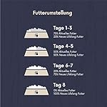 Zusammensetzung: Frisches Huhn* (40 %), dehydriertes Hühnerprotein, Erbsenstärke*, Erbsenprotein*, Geflügelfett, Kartoffeleiweiß, hydrolysiertes tierisches Protein (Huhn), Rübenschnitzel, Erbsenkleie*, Fructo-Oligosaccharide (FOS), Fischöl, Mineralstoffe, getrocknete Ringelblumenblüten* (0,1 %), Hefezellwände (Quelle von Mannan-Oligosacchariden (MOS)), getrocknete Kräuter* (0,05 %) (Thymian*, Basilikum*, Ingwer*, Odermennig*, Rosmarin*), Yucca schidigera, getrocknete Äpfel* (0,03 %), getrocknete Tomaten* (0,03 %), getrocknete Karotten* (0,03 %), Zitrus-Extrakt (0,03 %) (Grapefruit, Orange, Mandarine, Bergamotte), Glucosamin (aus tierischem Gewebe) (0,024 %), Chondroitinsulfat (0,012 %). *Natürliche Zutaten Zusatzstoffe pro kg: Ernährungsphysiologische Zusatzstoffe: Vitamin A 26000 IE, Taurin 1535 mg, Vitamin D3 1360 IE, Vitamin E 410 mg, Vitamin C 175 mg, Eisen (Eisen-(II)-sulfat, Monohydrat) 106 mg, Zink (Aminosäuren-Zinkchelat, Hydrat) 106 mg, Mangan (Mangan-(II)-sulfat, Monohydrat) 43 mg, Biotin 11,8 mg, Kupfer (Kupfer-(II)-sulfat, Pentahydrat) 11,8 mg, Jod (Calciumjodat, wasserfrei) 2,3 mg, Selen (Natriumselenit) 0,1 mg. Analytische Bestandteile: Protein 39 %, Fettgehalt 16 %, Rohfaser 2,5 %, anorganischer Stoff 7 %