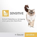 Das Alleinfuttermittel ist mit Präbiotika zur Förderung einer gesunden Darmflora angereichert – für eine ganzheitliche Ernährung von empfindlichen Katzen, die ein langes Katzenleben fördert