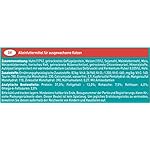 » Zusammensetzung: Huhn (17%), getrocknetes Geflügelprotein, Weizen (15%), Sojamehl, Maisklebermehl, Mais, Weizenklebermehl, tierisches Fett, getrocknete Rübenschnitzel, getrocknete Chicoréewurzel, Mineralstoffe, Autolysat (angereichert mit wärmebehandeltem Lactobacillus Delbrueckii und Fermentum-Pulver 0,025%), Hefe