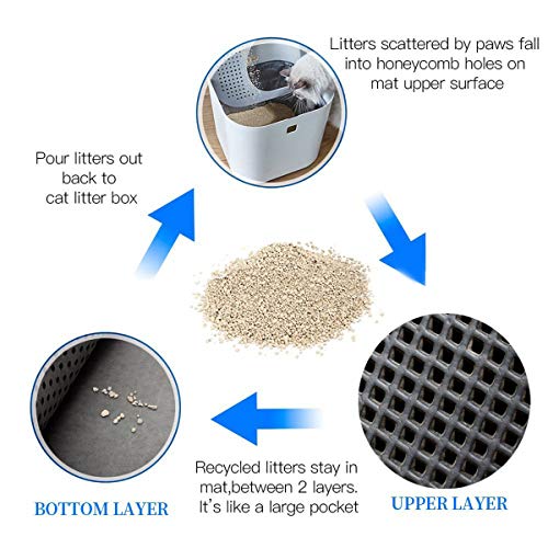 Katzenklo Matte – Unsere Katzenstreu-Matte ist zweilagig aufgebaut. Die obere Schicht ist mit Löchern für herabfallenden Abfall und Urinabfall versehen, öffnet sich an einem Ende und in der mittleren Tasche. Faltbares Design für leichteres Reinigen und Waschen in einer kleineren Spüle.
