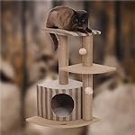 * [Merkmale des Katzenklettergerüsts] Die Kombination aus gestreiftem Stoff und monochromem Stoff verleiht Schönheit. Dieser Stoff macht die Katze nicht nur sehr bequem, sondern ermöglicht es der Katze auch, ihre Krallen zu schleifen.