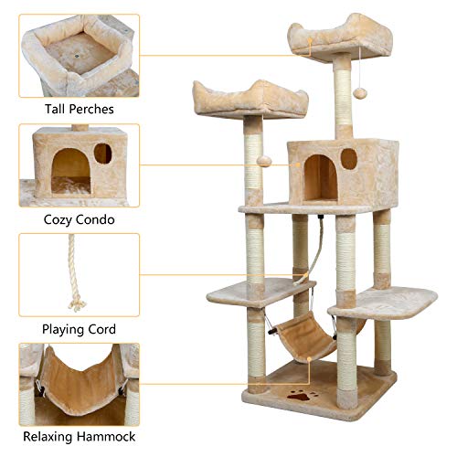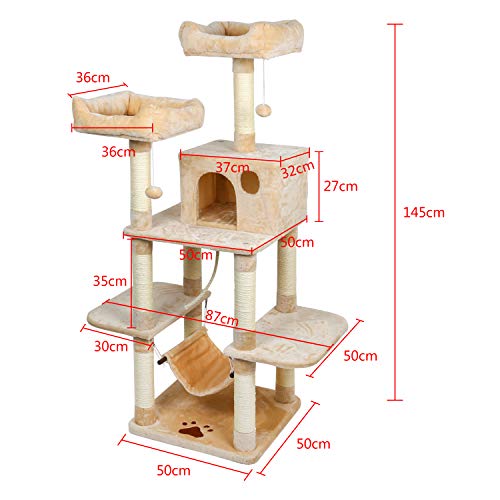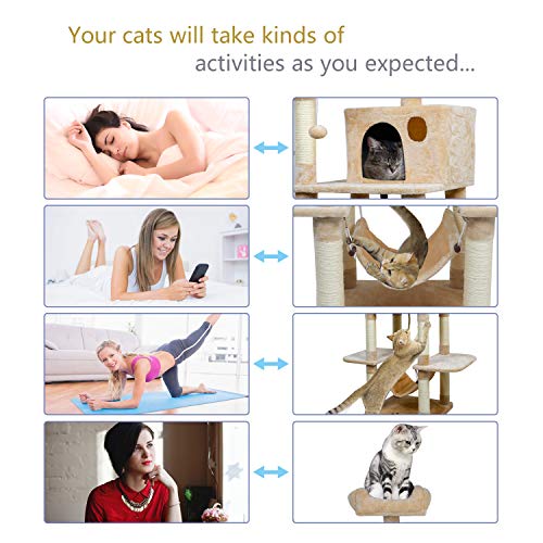 ◕ω◕ Natürliche Bedürfnisse – Es gibt genügender Sisal auf jeder Säule, die 1/2 der Fläche bedeckt, um die Bedürfnisse der Katze zu erfüllen, ihre Kralle an jeder Position zu jeder Zeit zu reiben.