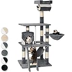 Der Kratzbaum bietet individuelle und sehr gute Möglichkeiten zum Spielen, Krallen schärfen oder als Rückzugsort. Über die Treppe kann ihr Tiger seine Rückzugshöhle erreichen, welche auf der ersten Etage zu finden ist. Gleich neben der Höhle hängt eine tolle Spielkordel. Ebenfalls auf dem ersten Stock befindet sich ein Loch, durch welches die Katze ihre gemütliche Hängematte erreichen kann. Perfekt zum Faulenzen eignet sich die runde Liegemulde, die etwas höher angebracht ist. Über die große zweite Etage, wo sich ihre Katze so richtig langmachen kann, geht es dann noch ein Stück höher zu einer Röhre und dann hinauf zur Top Aussichtsplattform auf 141 cm. Von dort kann die Katze den ganzen Raum entspannt überblicken. An den strapazierfähigen Mixed-Säulen, bestehend aus einer Plüsch-Sisal Kombination kann ihr Vierbeiner die Krallen pflegen. Alles in allem – Ein sehr umfangreicher Kratzbaum, bei dem keine Katzenwünsche offenbleiben, auf trotzdem platzsparender Grundfläche.