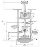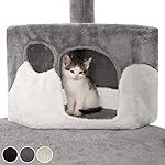 Details: TecTake Katzen Kratzbaum mit XXL Liegemulde | 2 Katzenhäusern | deckenhoch – Diverse Farben – (grau-Weiss | Nr. 402109)