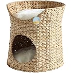 Doppelkörbchen mit Katzenhöhle/Katzennest und oberem Bett – geflochtenes, natürliches Seegras