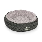Das Komfortbett Donut „Seoli“ besteht aus Softplüsch, außen dunkelgrau, innen hellgrau (100% Mikrofaser). Die Watte-Füllung bietet einen besonders angenehmen Liegekomfort. Diese Ausführung ist im Durchmeser 45 cm breit (Außenmaße).