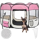 Details: TecTake Welpenlaufstall Tierlaufstall für Kleintiere wie Hunde, Katzen – Diverse Farben – (Pink)