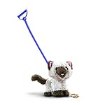 Kami hat ein kuschelig-weiches Fell, das zum Streicheln und Schmusen einlädt. Mit einer niedlichen Schnauze und einem schlauen Katzenblick erobert sie das Herz ihres Besitzers im Sturm. Kami gibt putzige Geräusche von sich, die ihr Frauchen oder Herrchen dazu einladen, in die Rolle eines Katzenbesitzers zu schlüpfen und sich liebevoll um sie zu kümmern. Füttern – Wenn Kami Hunger hat, möchte sie gefüttert werden. Sobald sie Leckerli für Leckerli in das süße Mäulchen gesteckt bekommt, antwortet sie mit niedlichen Schmatz- und Schluckgeräuschen. Sind alle Leckerlis verspeist, dann ist es Zeit für einen kleinen Spaziergang. Spazieren gehen – Die niedliche Plüschkatze Kami ist mit einer Rolle am Unterkörper ausgestattet, die es ermöglicht, sie fröhlich auf einer glatten Fläche vor- und zurückzuschieben. Die zweiteilige Leine ist perfekt dafür geeignet. Möchte ihr Besitzer sie auf einer erhöhten Oberfläche – z.B. auf einem kleinen Tisch – bewegen, so reicht die kurze Leine aus. Möchte er aber mit Kami spazieren gehen, so kommt die Verlängerung ins Spiel. Einfach die beiden Leinenteile ineinanderstecken, und schon kann es losgehen. Kami freut sich schon so auf den Ausflug und gibt drollige Katzengeräusche von sich. Upps. Kami muss mal. Bald erleben Nachwuchs-Katzenhalter eine kleine Überraschung. Wird die Leine nach hinten gezogen, setzt sich Kami kurz hin und macht ein Häufchen – huch, Kami pupst sogar. Nach und nach kommen so die Leckerlis auf lustige Weise wieder zum Vorschein aufräumen