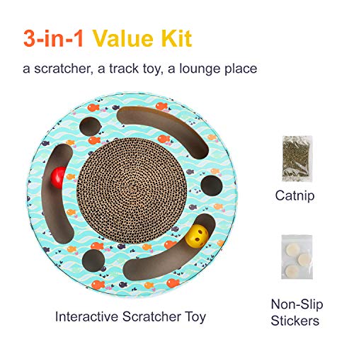 【Interaktives 3-in-1 Spielzeug】Dieses katzenspielzeug beschaftigung ist auf recyclebaren Materialien hergestellt und wird mit einem Beutel Katzenminze sowie 3 Anti-Rutsch-Stickern geliefert. Es kann als Katzen Kratzbrett, Katzen Spielschiene oder auch einfach als Platz zum Ausruhen genutzt werden und ist damit für jeden geeignet, der vielfältige Katzen Spielsachen sucht.