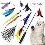 Details: NIBESSER Katzenspielzeug Set Interaktives Spielzeug mit Federn, Katze Spielzeug mit Katzenangel Ersatzfedern, 10PCs