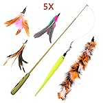 Details: Parain Katzenspielzeug Set Interaktives Spielzeug mit Federn, Katze Spielzeug mit 5 Katzenangel Ersatzfedern